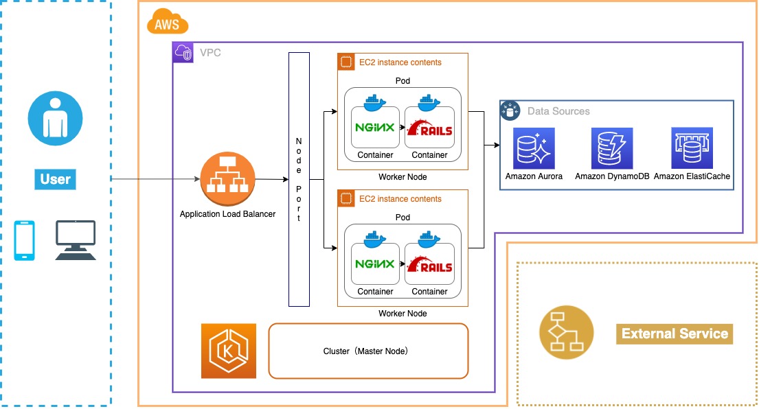 Home > エンジニアリング > 古き良きRailsアプリケーションをコンテナ化してKubernetes上で動かす > earth-architecture-Copy of ページ2